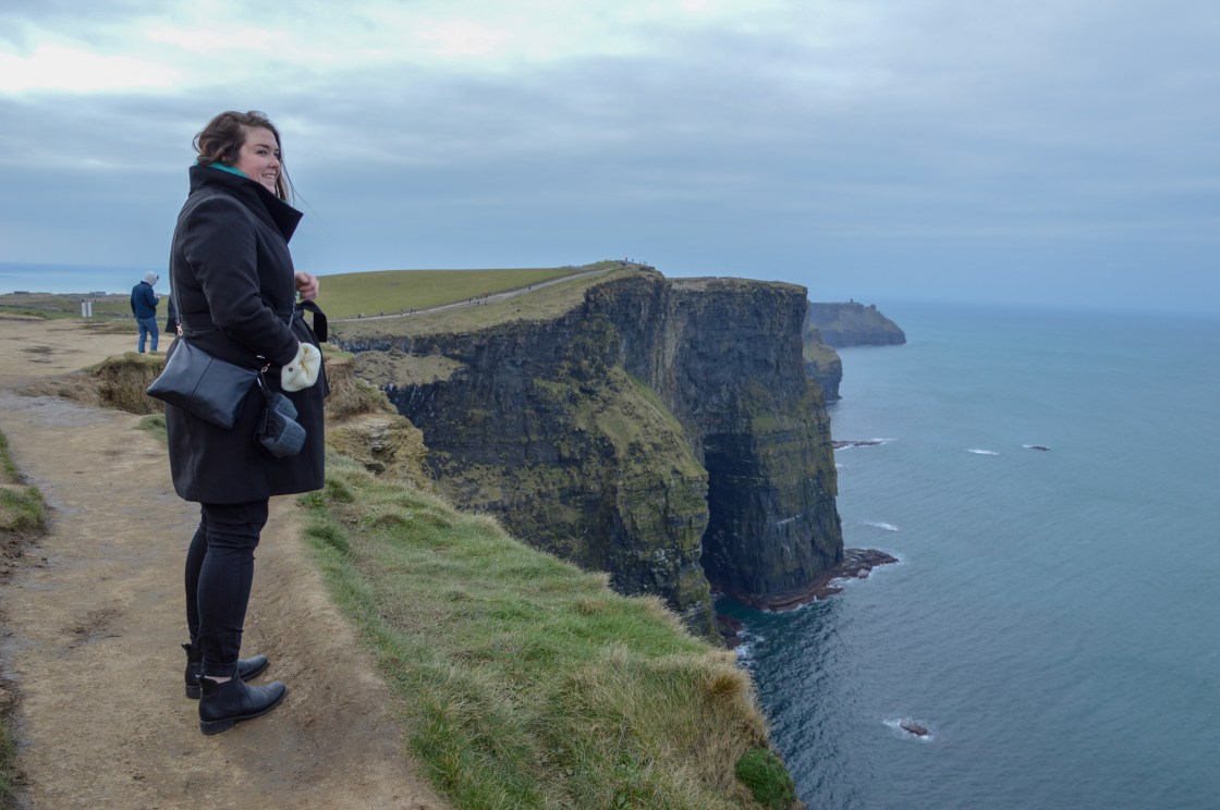 It takes about an hour and only 15,891 roundabouts to get to the Cliffs of Moher from Shannon and it was worth every spin around the roundabout. Bring that student ID and your entry will be €6 each, then you’ll spend about €15 on a new hat because you forgot yours. Bundle up, because I’m here to tell you, wind is real and it is fierce at these cliffs, but it was worth every bit of wind smacking you in the face.