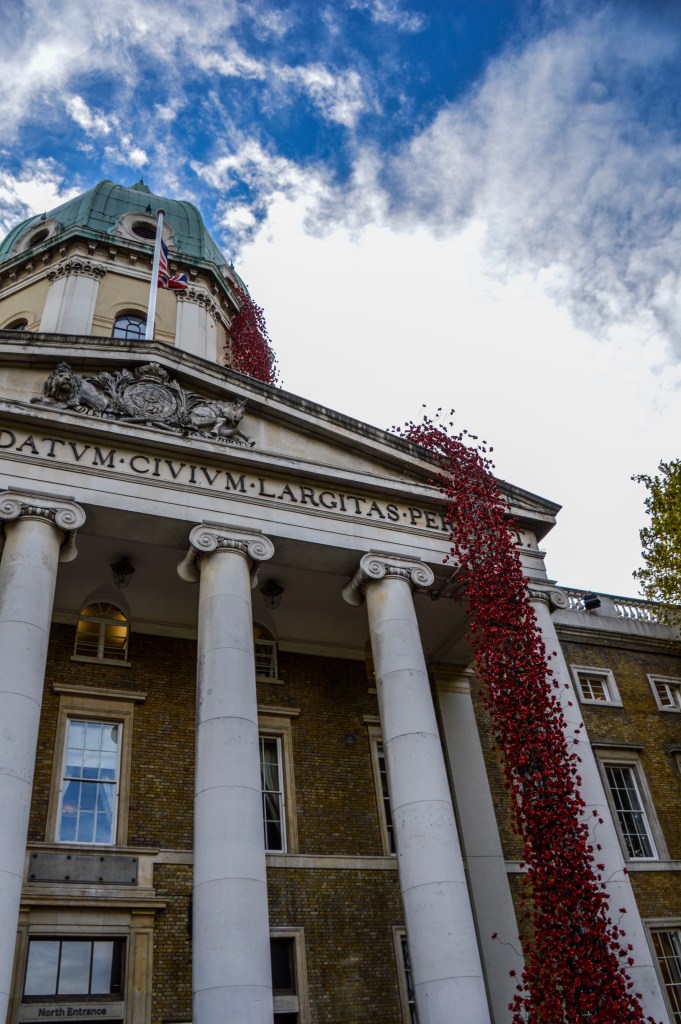 In November, parts of the city, and many people’s lapels are covered in poppies, and I have to admit, I love it. This year the poppies made their appearance at the Imperial War museum, and it was a beaut.