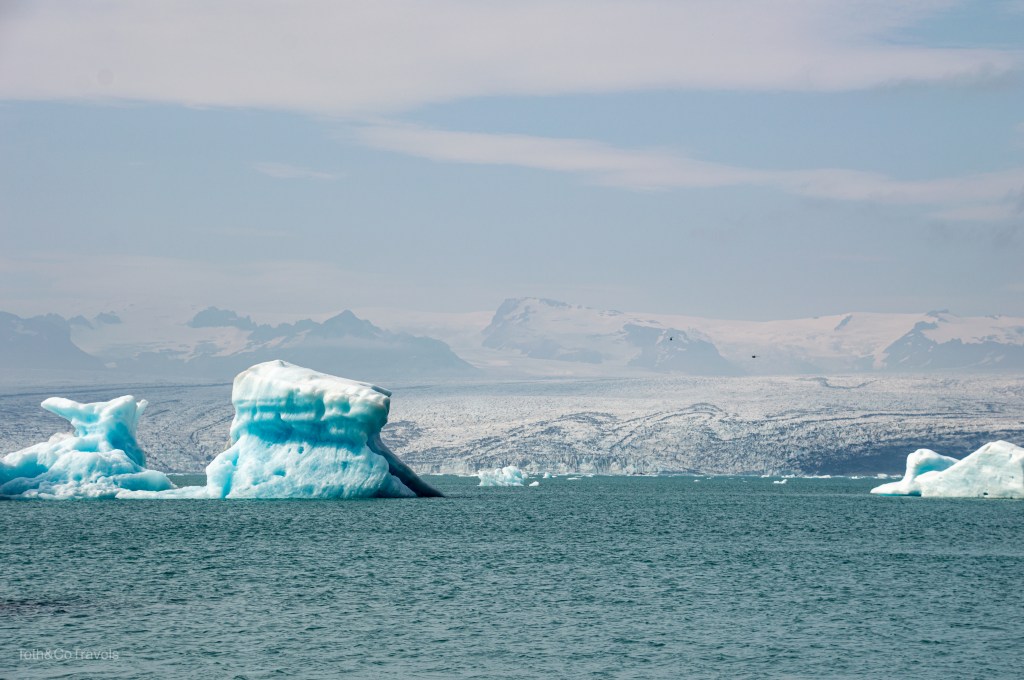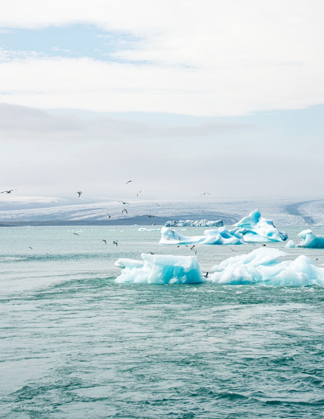 We were coming up on the glacial lagoon again around 9:00am and there was no wind, way less people, and no clouds, so we HAD to stop again. There was new glaciers in the water, and it was just as gorgeous as the day before, maybe even more. We didn’t go to the beach again, but I’m guessing there was some large “diamonds” over there that day.