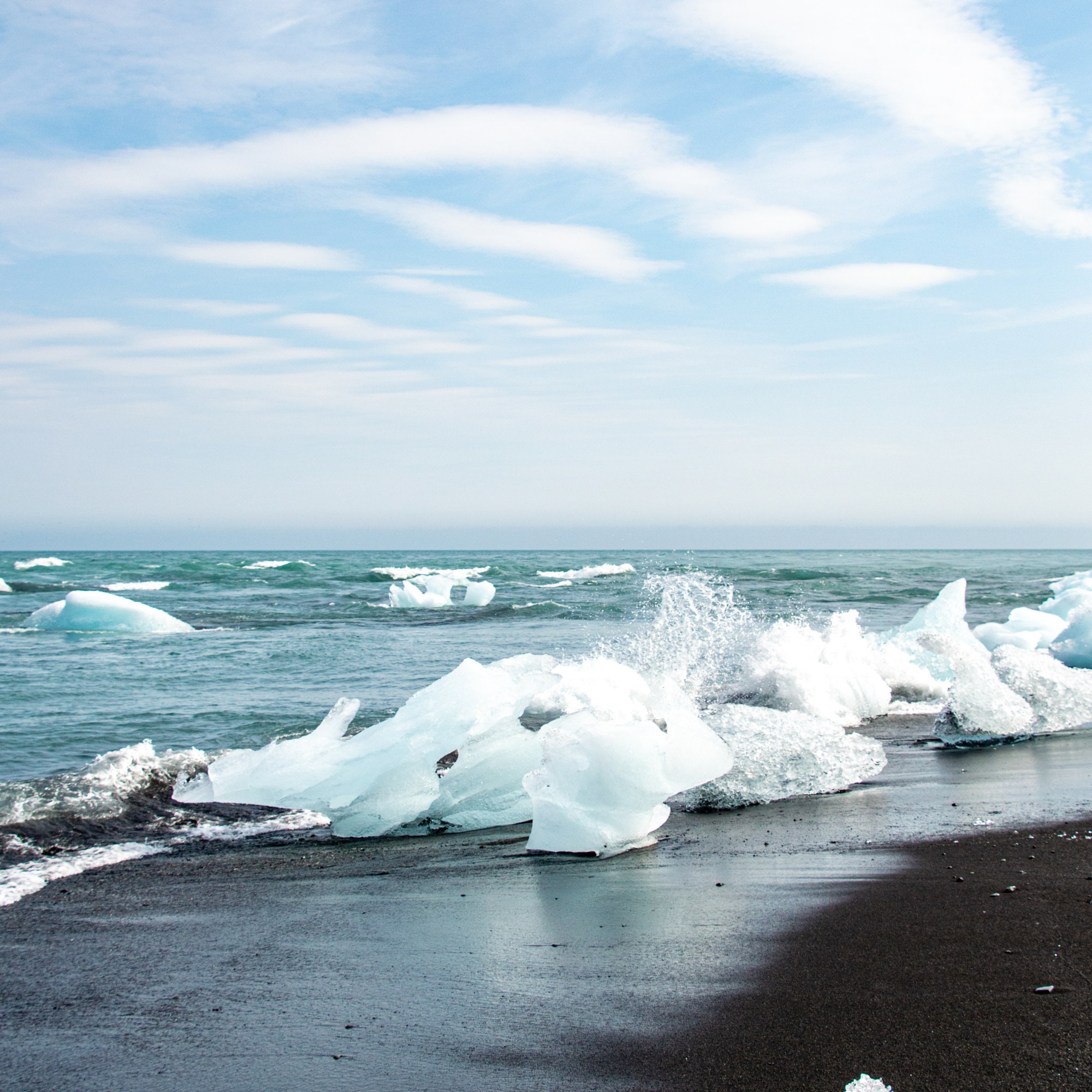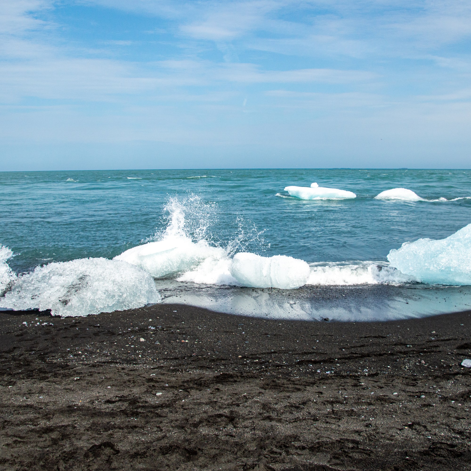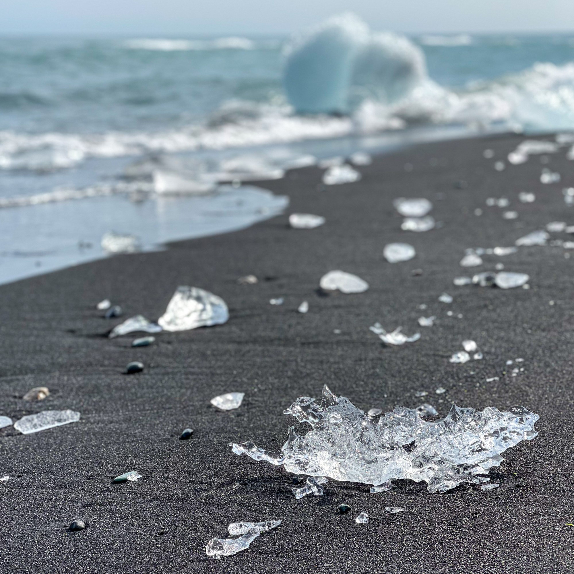 After staring at the giant chunks of ice in the lagoon for a while we went across to the diamond beach. This was tricky because there is 2 parking areas, one on each side of the bridge and the bridge takes forever to get across because it is one way and no one knows the traffic rules. We sat and waited for ALL the cars to cross (when only one is supposed to go at a time, taking turns from each direction) multiple times. Because we couldn’t figure out where the ice was actually washing up. We finally figured it out, and crossed the bridge… again.