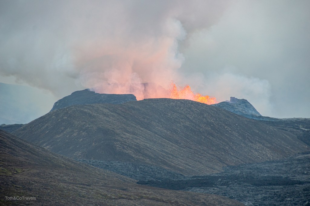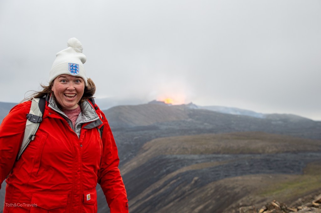 In case you didn’t know, the Geldingadalir volcano on Mount Fagradalsfjall erupted in Iceland in March and it was (and is) still active. My hobby before this trip became obsessively checking the webcams of said volcano to see what kind of activity was going on up there. Well, much to our luck, the day we landed the webcams were showing a clear view of the crater. After our fish and chips, we packed up all our warm clothes and were on our way! The volcano parking is about an hour from Reykjavik, just outside of Grindavik. You can find directions to this on a bunch of websites, like this one, and when they all say “you’ll know the parking lot when you see it” they are correct. Round trip from our hotel in Reykjavik this adventure took about 6 hours and we walked about 4.5 miles (round trip) to see the volcano, and it DID NOT DISAPPOINT. We got sooooo lucky. After days of not much activity or clouds blocking the crater, we saw FOUR eruptions while up there. It was amazing. Watching liquid hot magma explode out of a mountain is nuts. 10/10 would recommend.