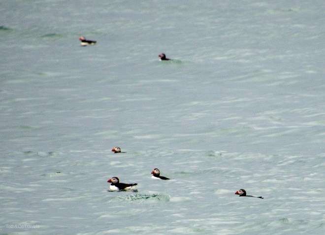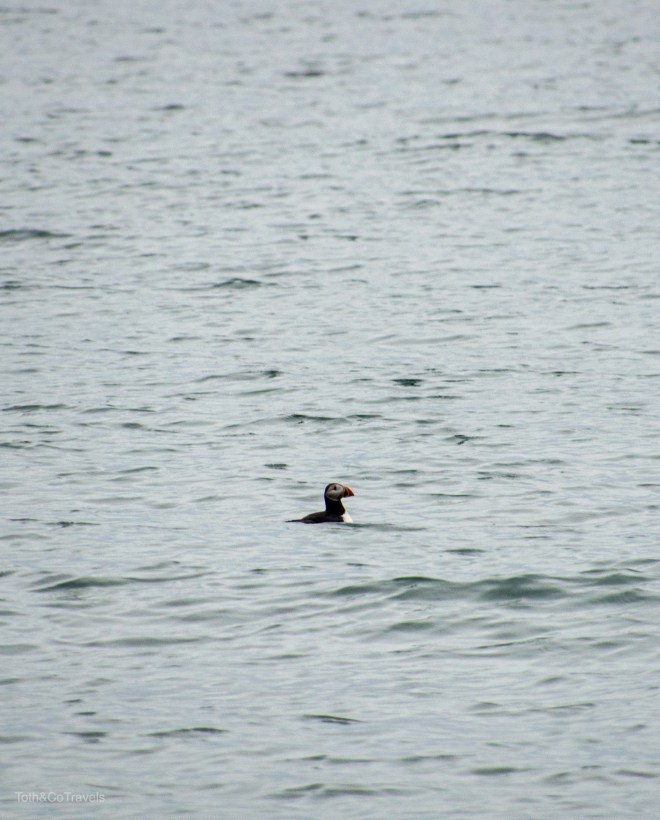Right, Húsavík. Aside from its fame from Eurovision, which they are totally leaning into, by the way, Húsavík also happens to be the whale watching capital of Iceland. Can you guess what we did on our first (and really only) full day in Húsavík? That’s right, lets go find some whales! Okay, we only found one whale, but North Sailing offers a whale and PUFFIN tour, which is obviously what we did. My dream of seeing puffins finally came true, we literally saw thousands. They all come in to lay their eggs on this island in the summer, so we spent some time floating around it watching them. I love puffins.