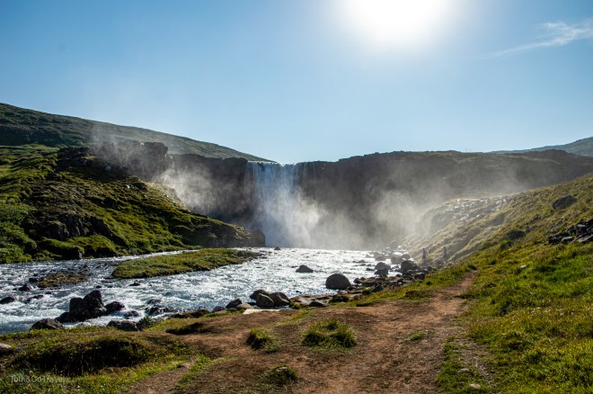 Godafoss is very easy to get to, you can see it from the road and you park and walk right up basically, depending on how close you want to get.