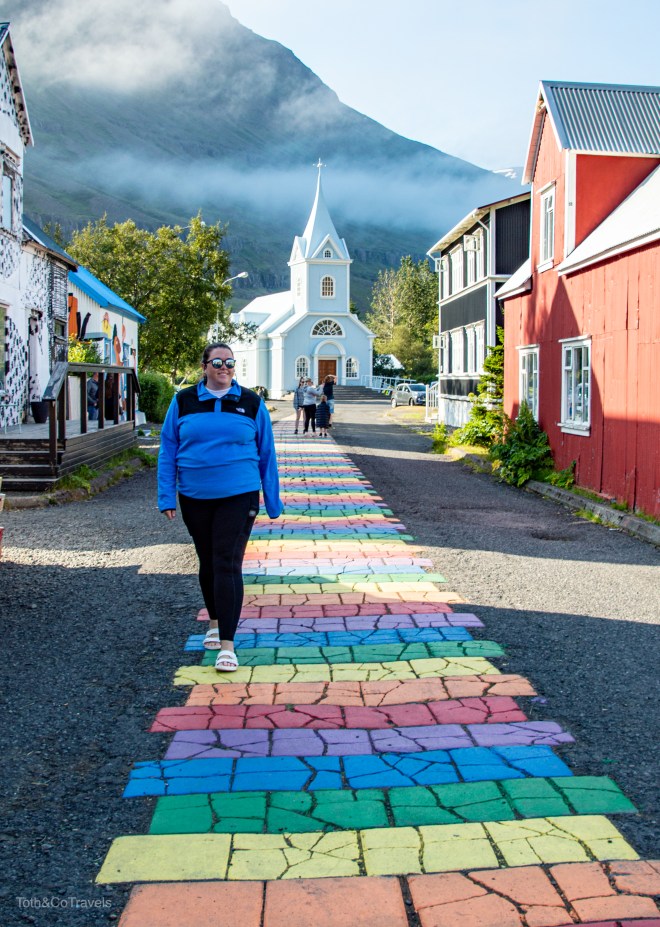 After the much longer than anticipated Studlagil Canyon excursion, we still had a long drive ahead, but we had been planning to go to Seydisfjordur on our way to Höfn. After discovering our hotel WOULD let us check in later than 8:30 (we would have been cutting it really close) we went on our way, and boy are we glad we did. Aside from the fact that I have been stalking photos of the church in Seydisfjordur forever, the drive there was GORGEOUS. It also featured that road Walter Mitty skateboarded down. If you haven’t seen The Secret Life of Walter Mitty, do yourself a favor and go watch it now. We also found another waterfall on the way. Scenes for days.