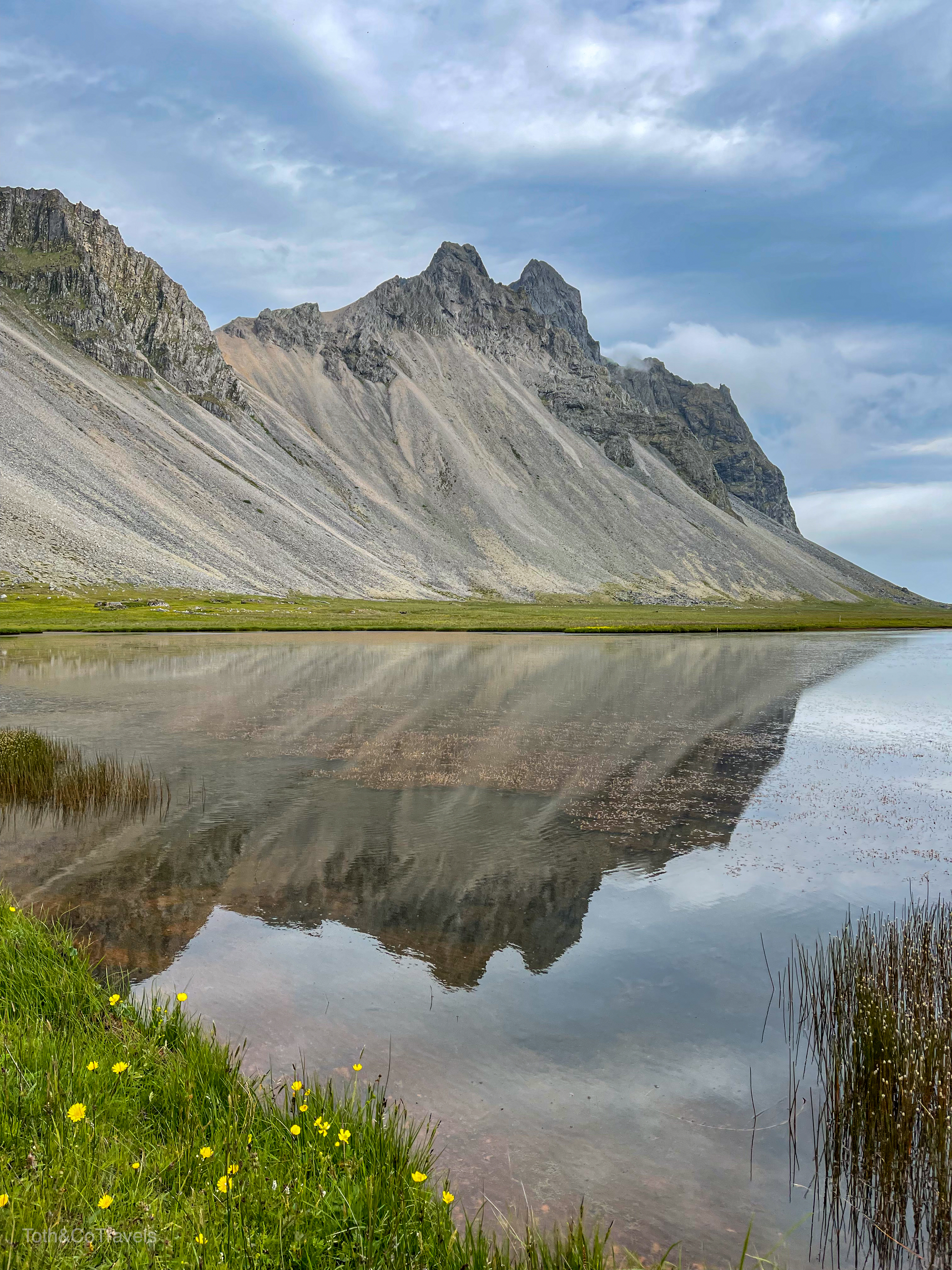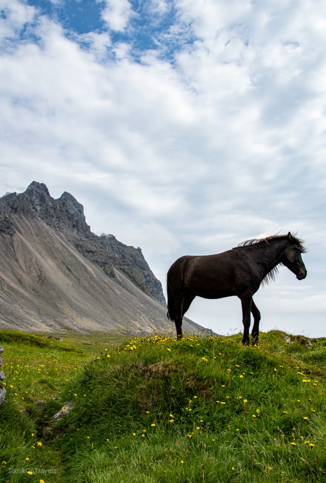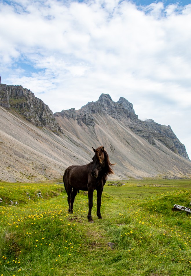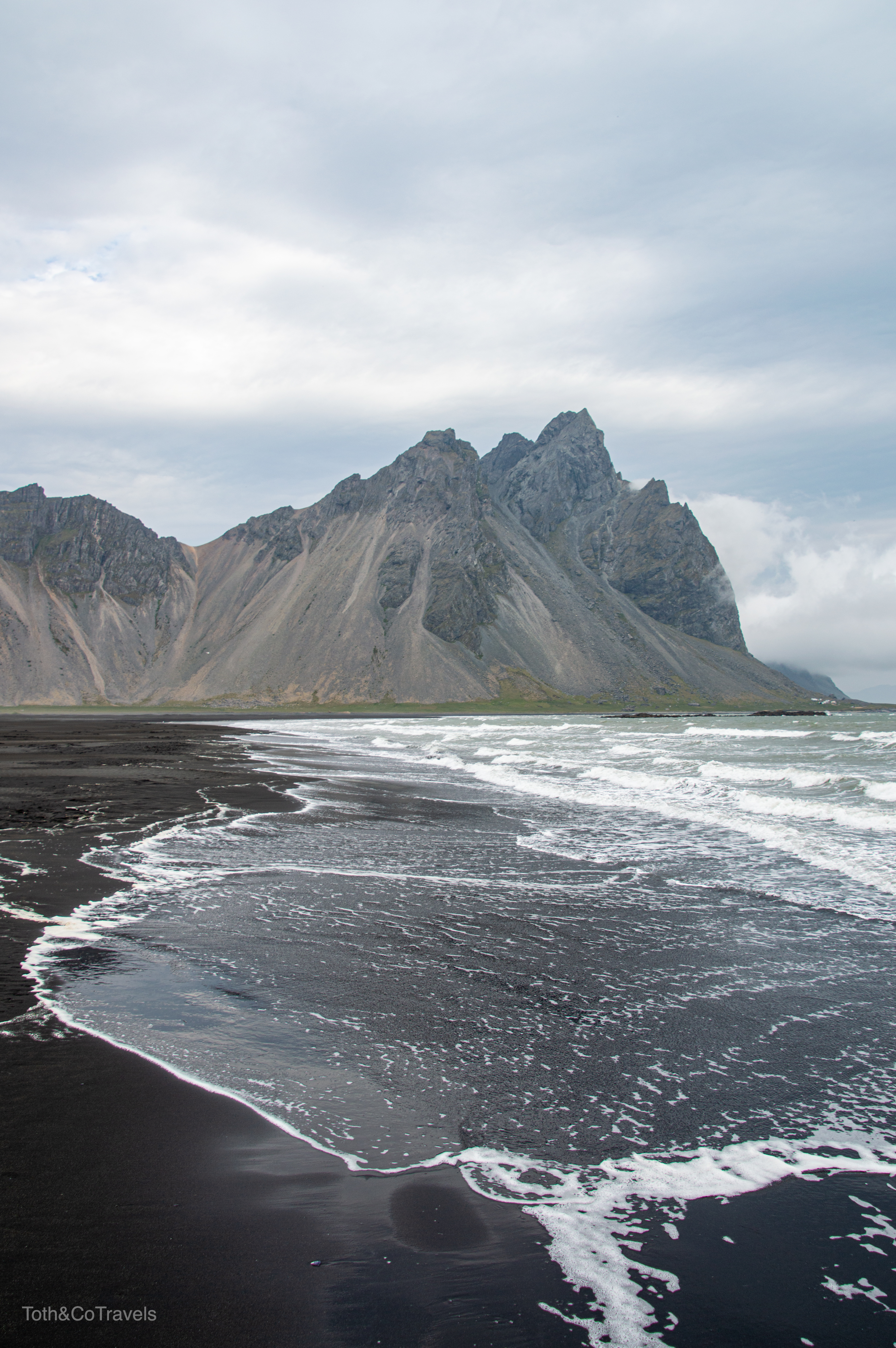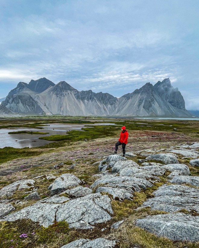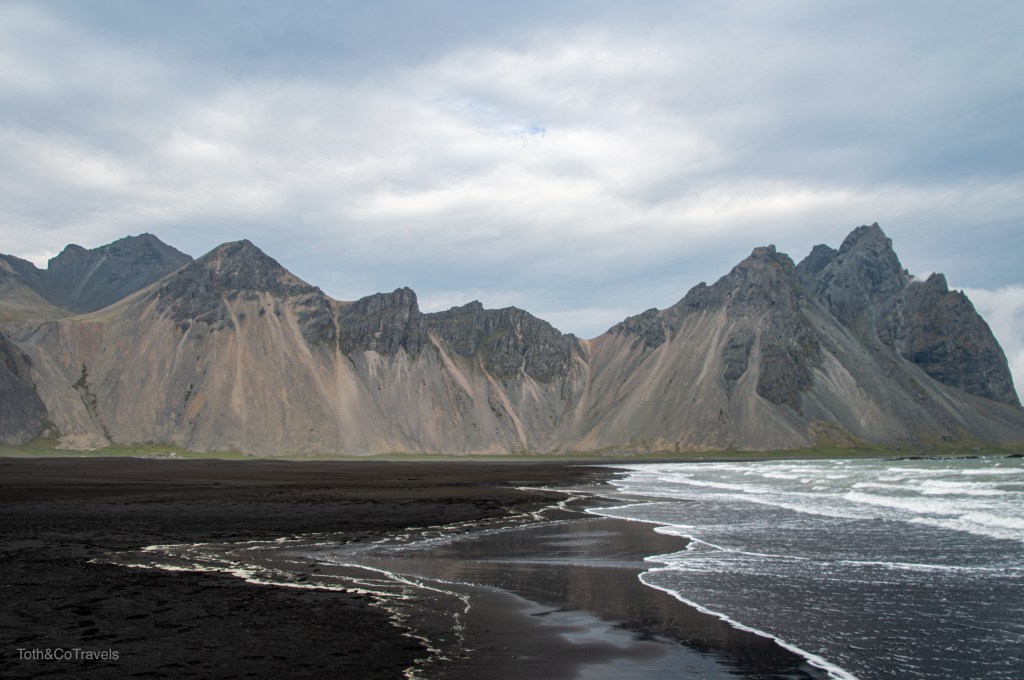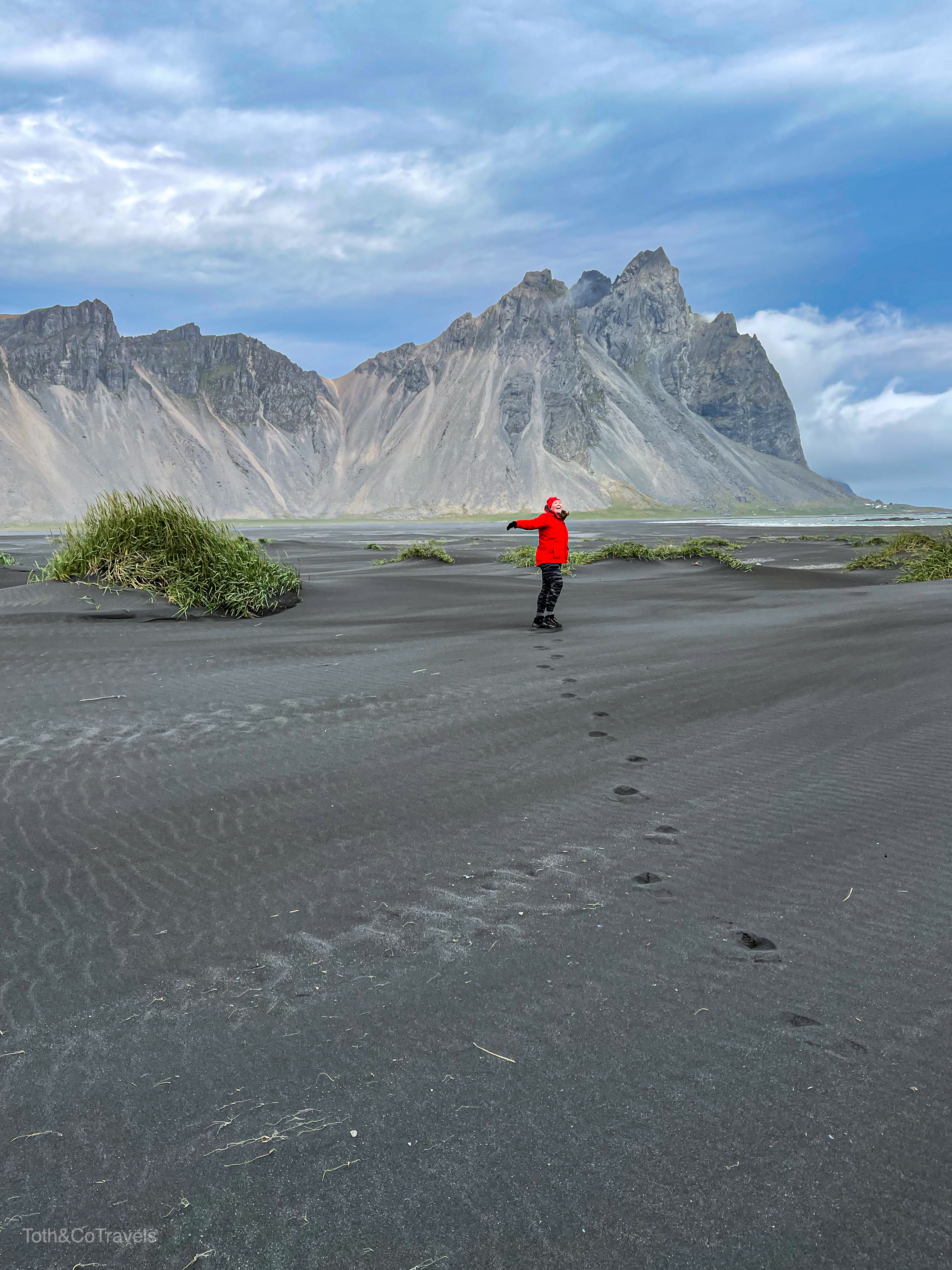 Luckily, the next day it was still cloudy but still clear enough to see the main event: Vestrahorn. I’m obsessed with this place. Dramatic mountains on a black sand beach? Doing the most over here. You do have to pay a fee to go onto the Stokksnes peninsula, but it is a small one and well worth it. Be ready for wind here though.