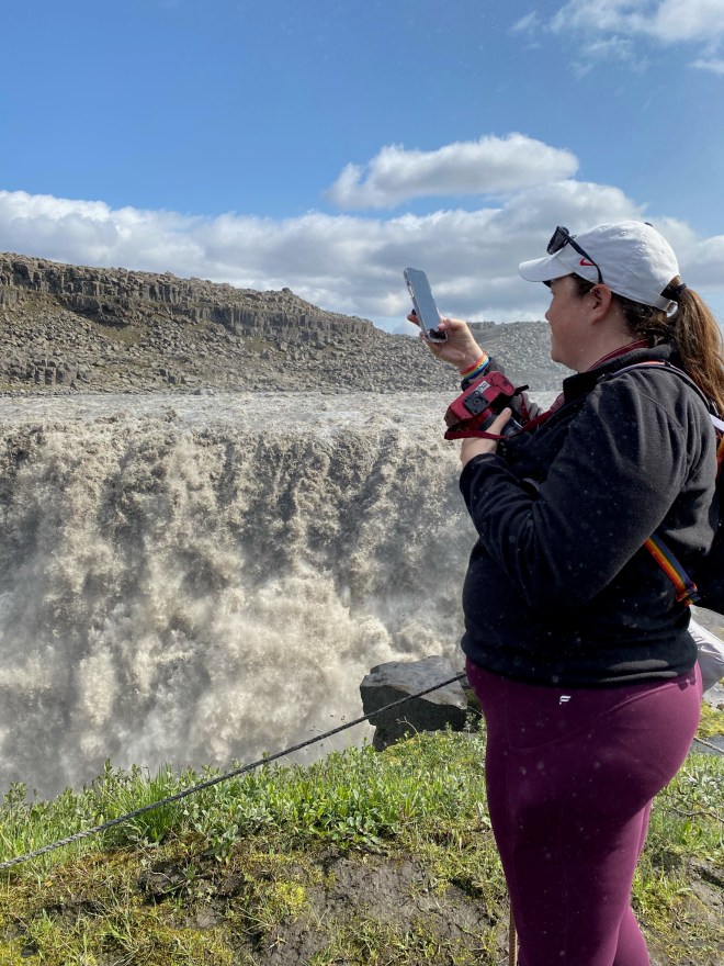The next day we dedicated to chasing waterfalls (sorry, TLC, we had to do it). There’s quite a few of the big ones you can get to in a reasonable amount of time from Húsavík. We drove probably an hour and a half or 2 hours from our little house. First stop: Godafoss.