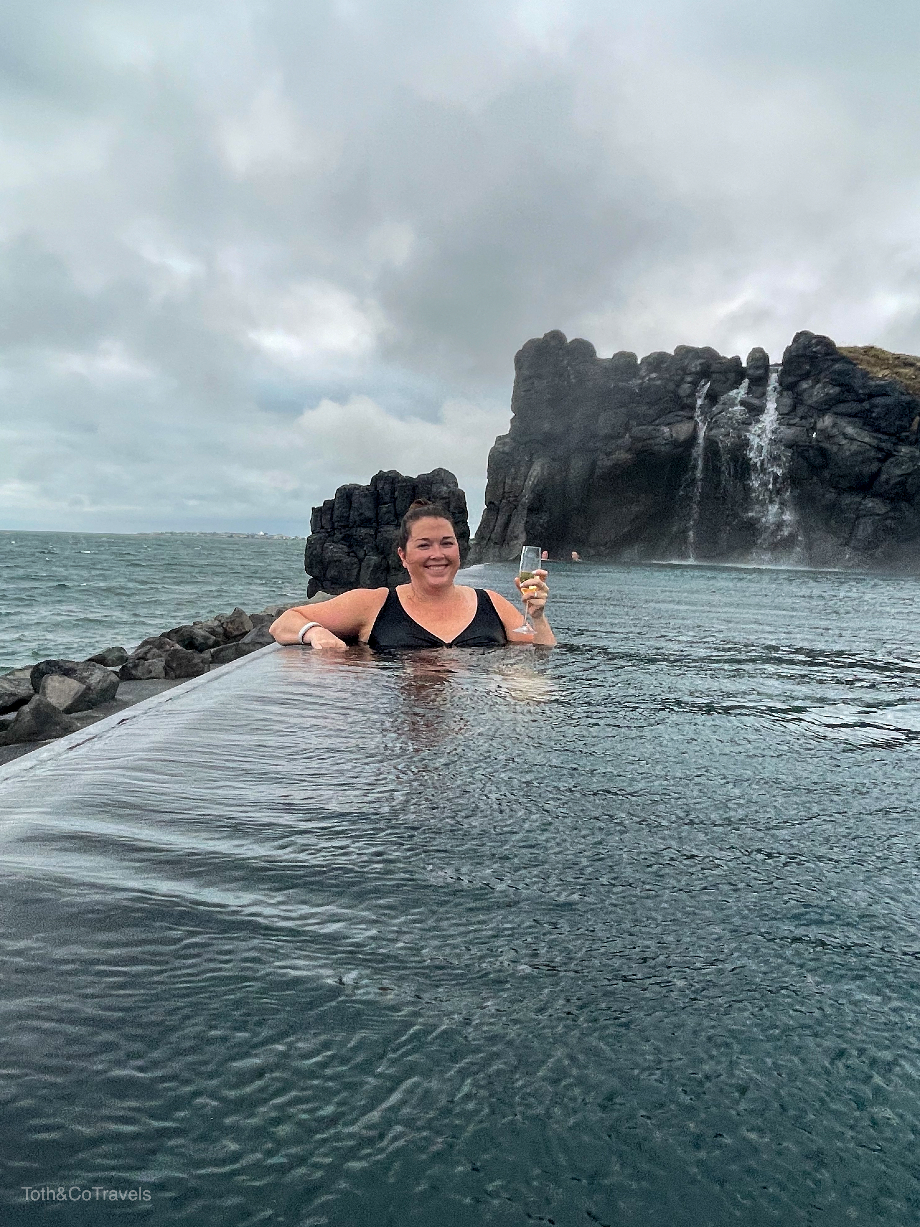 After some wandering and dinner, we decided it would be a good idea to hit up Sky Lagoon to soak our sore bodies in some hot water. I LOVED Sky Lagoon, it was definitely my favorite lagoon of the trip. Its right outside Reykjavik, and they’re just crushing it over there. My mind was blown that you just get a little wrist band that locks your locker, and has your credit card on it to buy things at the swim up bar. Technology, man. It turns out all the lagoons have these because Iceland is just better at things, apparently.