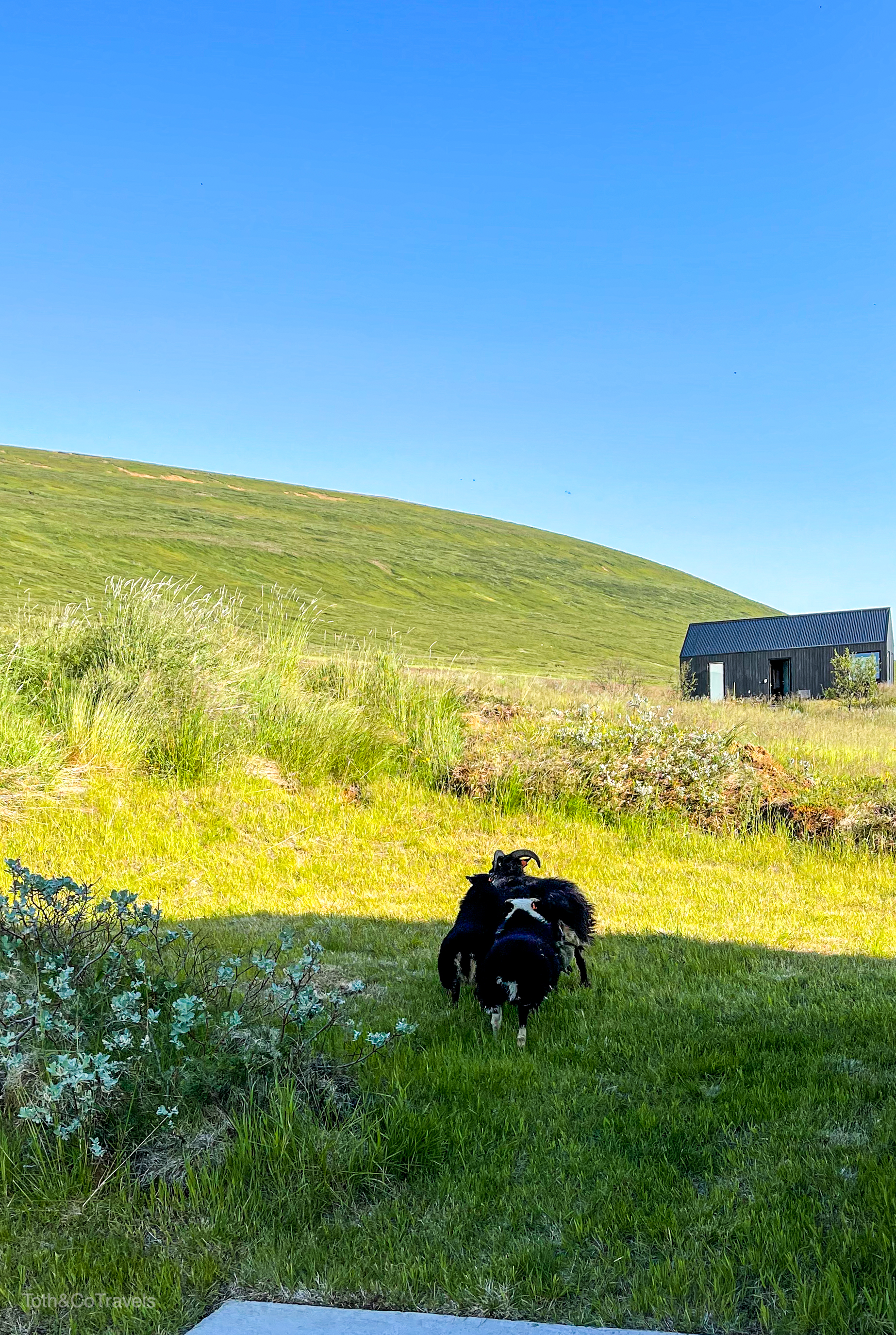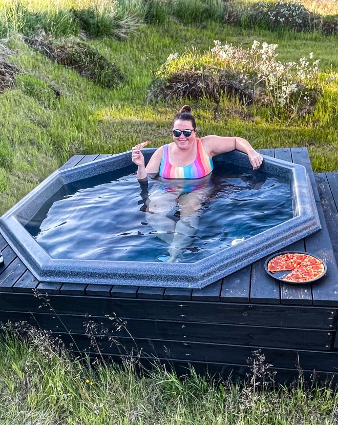 We stayed about 25 minutes outside of Húsavík at Svartaborg and it was a dream! You get your own adorable little house complete with a “hot pot” (private hot tub) and sheep neighbors! Look at this beauty.