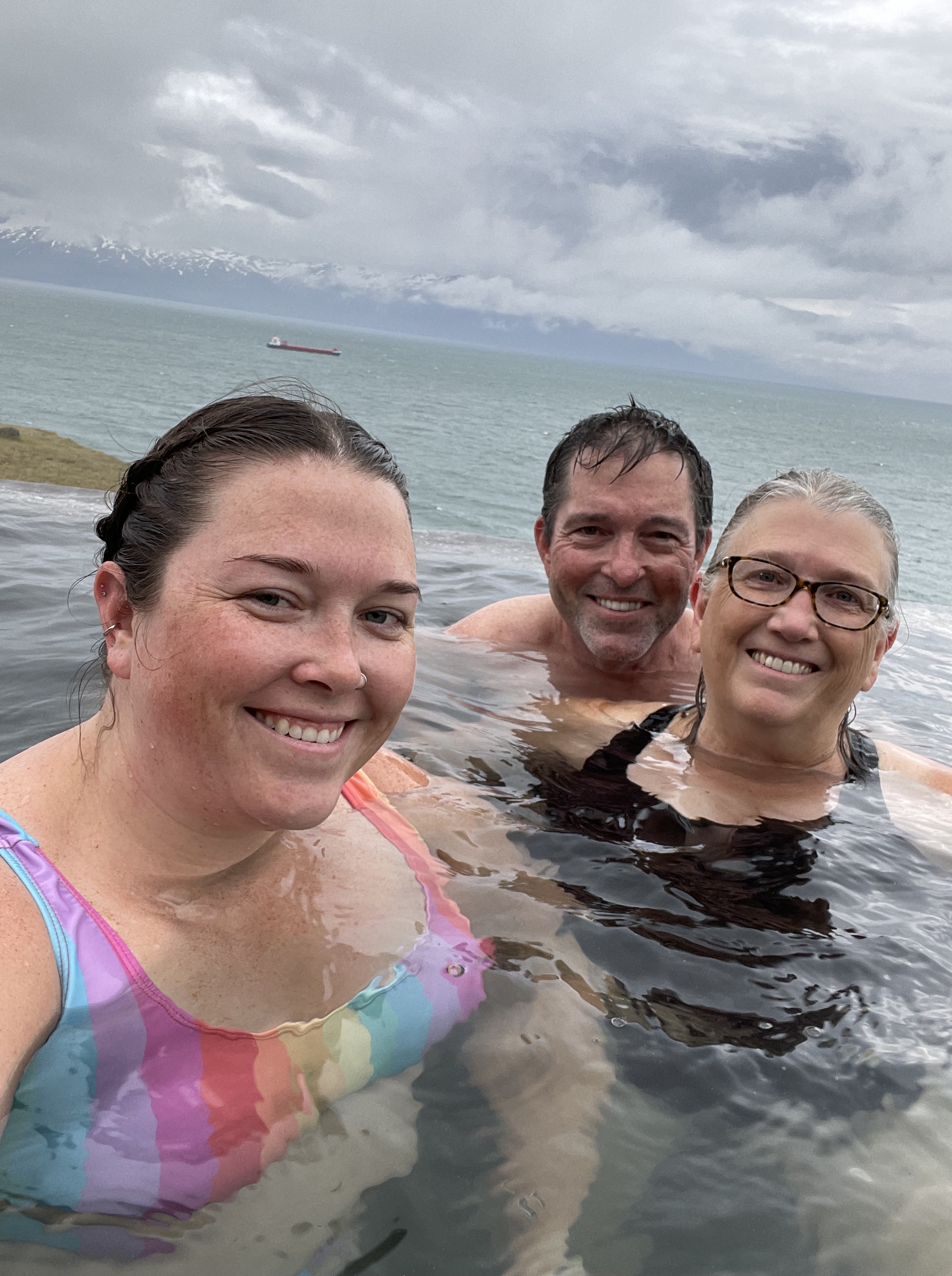 Next on the agenda, another geothermal pool! Geosea just opened in Húsavík recently, and while its got great views over the bay and mountains, it wasn’t my favorite of the pools we went to. There was too many people there for the size of the pool, in my opinion. We went at around 7pm. Also a warning to anyone who is shy, all the lagoons require you to shower without a bathing suit before entering the water, and while the bigger ones we went to like Blue Lagoon and Sky Lagoon have individual shower stalls, Geosea does not.
